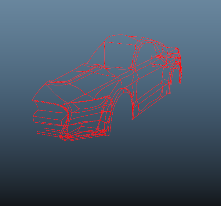 J’ai commencé par créer la base avec des courbes NURBS (les lignes de la voiture), en ne réalisant que la moitié, car un effet miroir serait ensuite appliqué pour générer l’autre moitié du véhicule.
